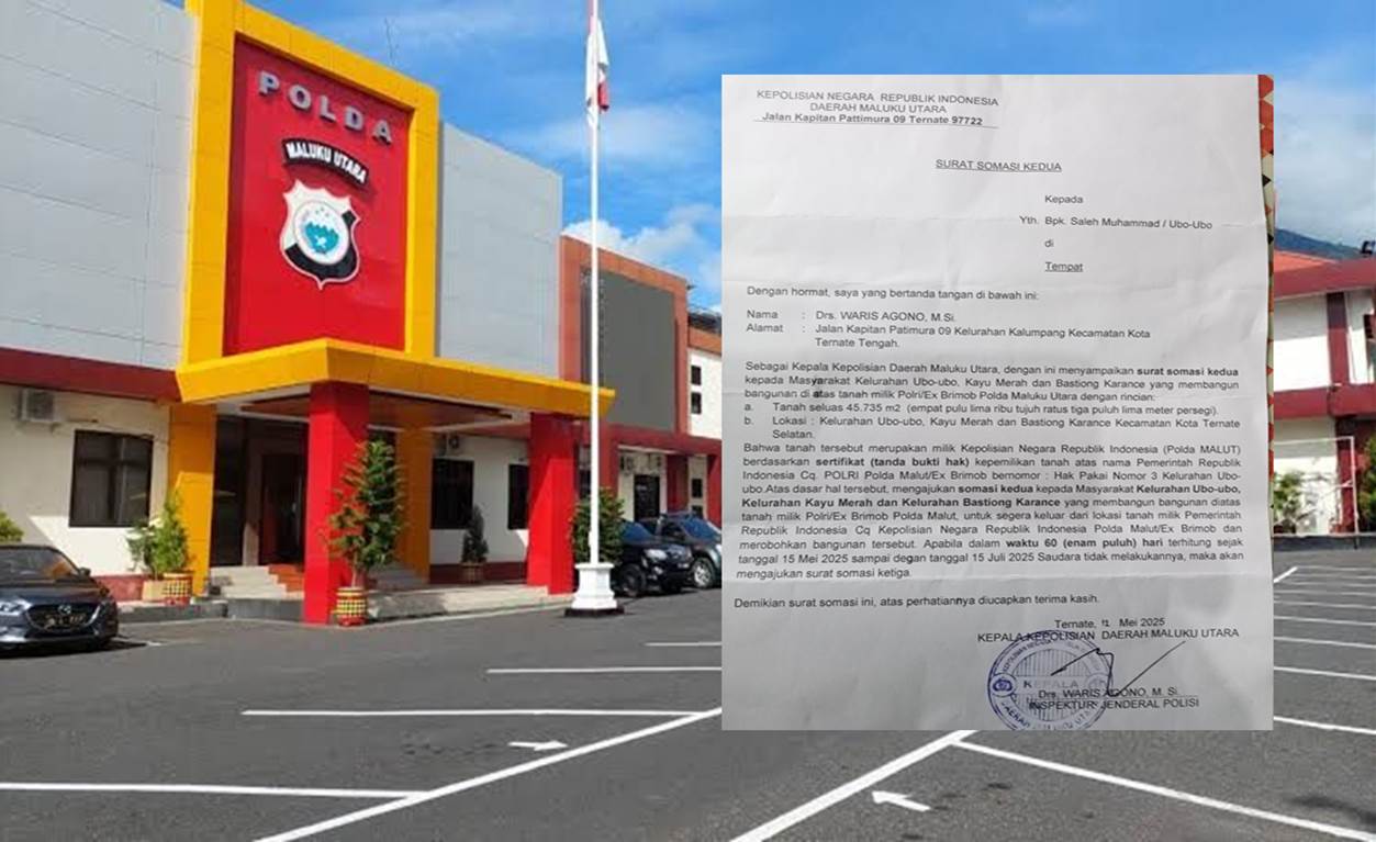 Namun, plot twist terjadi pada **Mei 2025**. Kapolda Maluku Utara mengeluarkan surat somasi kedua terhadap warga di tiga kelurahan (Ubo-ubo, Kayu Merah, dan Bastiong Karance) terkait sengketa tanah seluas 45.735 m² berdasarkan Hak Pakai Nomor 3.